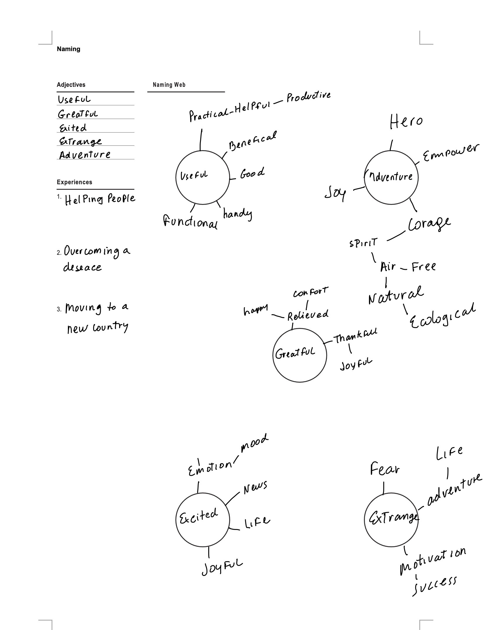 For this assignment, I began by thinking of unrelated experiences that shared a common emotional response. Then, I wrote adjectives that align with conference goals. Lastly, I chose eco-pack because it is clear, simple, and reflects the purpose of the conference.